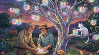 「これは何の果実だい?」旅人が尋ねると、庭師は一つをもぎって手渡しました。 「これは『言葉の果実』です。食べてみてください。あなたが必要としている味がするはずですよ」